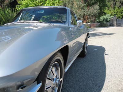 Paint is recently redone to silver metallic while the car was Daytona blue originally. Few flaws in the paint, high gloss shine all over, could have benefited from more professional polyester work.